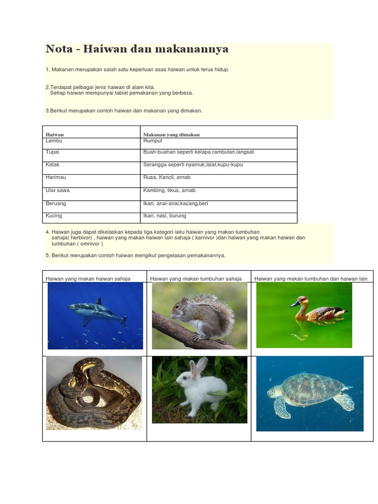 Nota Sains Tabiat Makanan Haiwan Pdf
